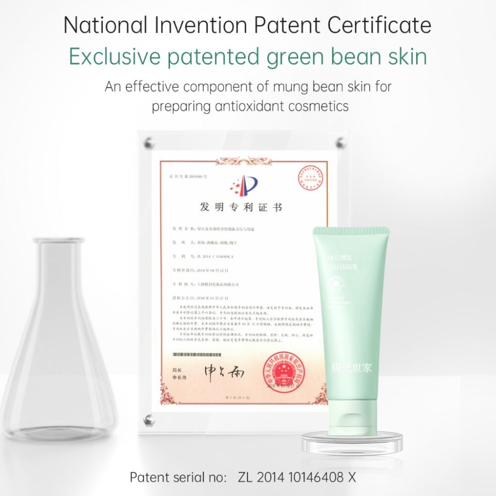 ① Exclusive patented Green Bean*: Extracted from green bean husks using innovative technology, this unique ingredient’s extraction process has obtained a national invention patent.
